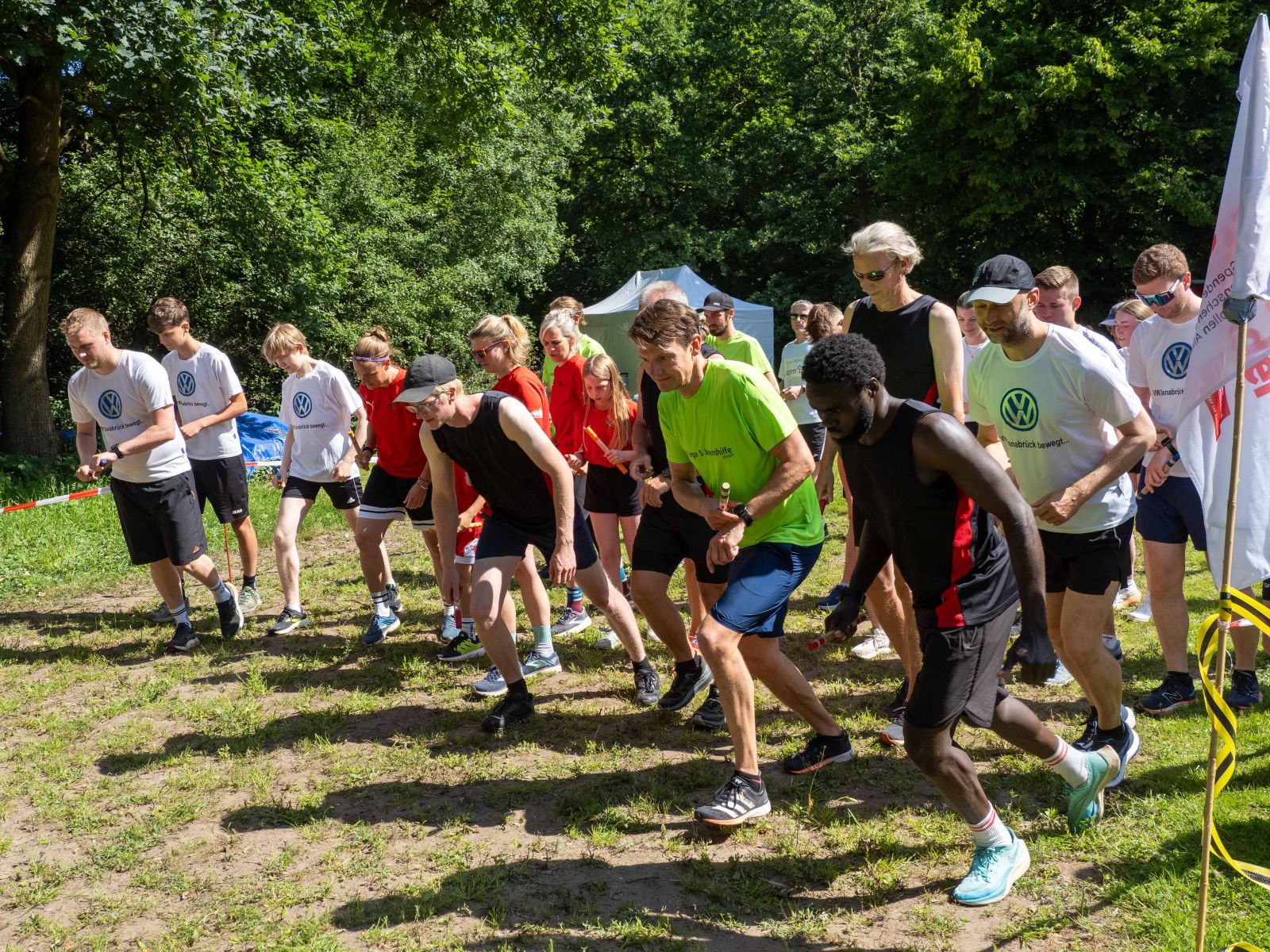 Um 13 Uhr gab der 1. Vorsitzende des TuS Haste 01, Rainer Welp, den Startschuss für den Inklusiven Jedermannlauf über 2,4 km. An diesem Lauf nehmen Sportler mit und ohne Beeinträchtigung teil. So auch wie in den Vorjahren wieder eine große Anzahl von Läuferinnen und Läufern der HHO Runners von der Heilpädagogischen Hilfe Osnabrück