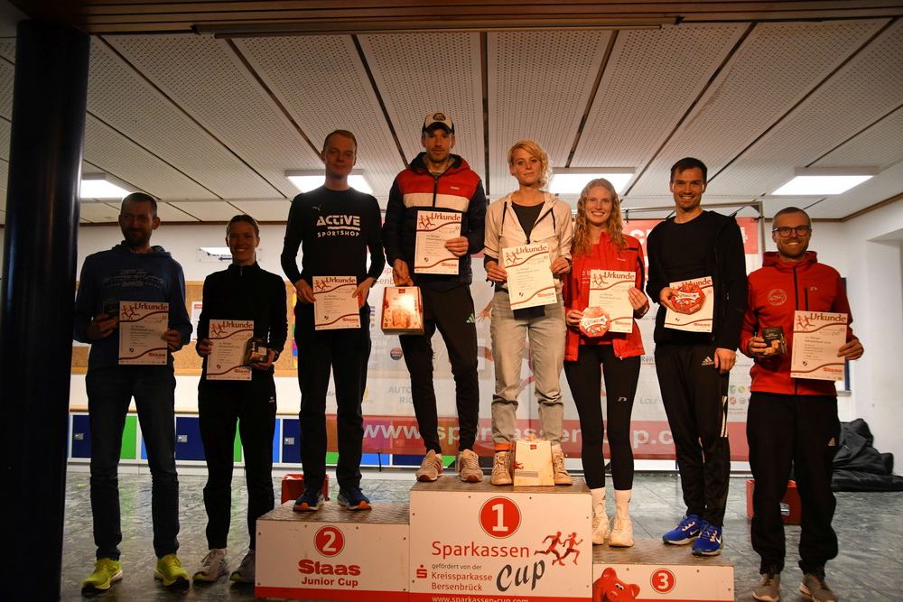 Bei nasskalten äußeren Bedingungen erreichten in diesem Jahr beim 10. Berger Adventslauf 463 Finisher inklusive Bambinis das Ziel. Der 12. und letzte Wertungslauf brachte auch die Entscheidung über die Gesamtsieger. Bei den Frauen wurde Gesamtsiegerin Corinna Tappe von den Bramscher Rumläufern vor Luise Huy (VfL Löningen) und Corinna Sonneck (TuS Bersenbrück). Den Herren Wettbewerb gewann Waldemar Popp vor Markus Wübben und Markus Maschmeyer, alle drei von den Bramscher Rumläufern... [mehr]