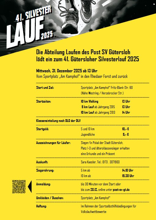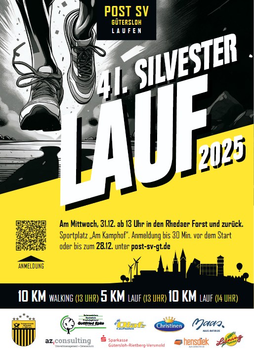 Die Abteilung Laufen des Post SV Gütersloh lädt ein zum 41. Gütersloher Silvesterlauf 2025