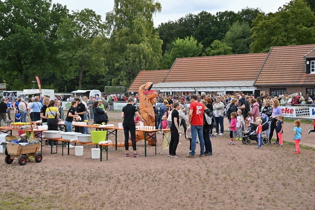 Wir starten am Freitag Nachmittag um 16:30 Uhr mit dem KITA-KIDS-DINO-LAUF. Hier können Kita-Kinder von 2 bis 6 Jahren starten. Die Streckenlänge ist genau eine Stadionrunde, also 400 m lang. Voraus läuft ein Dinosaurier, dem die Kinder begeistert folgen. Am Ende der Stadionrunde erwartet die Kinder riesiger Zuschauerapplaus und eine Medaille. Gerne kann z.B. ein Elternteil sein Kind auf der Strecke begleiten.